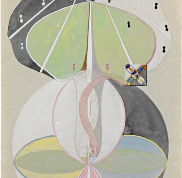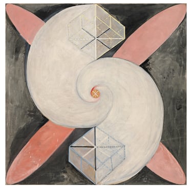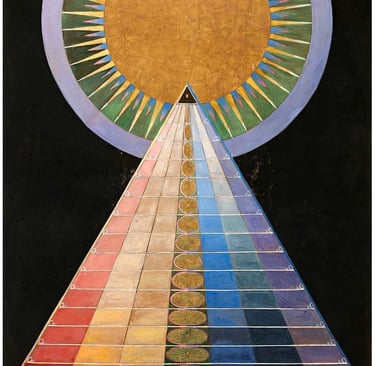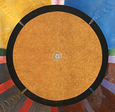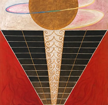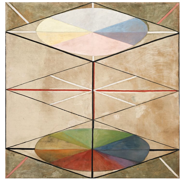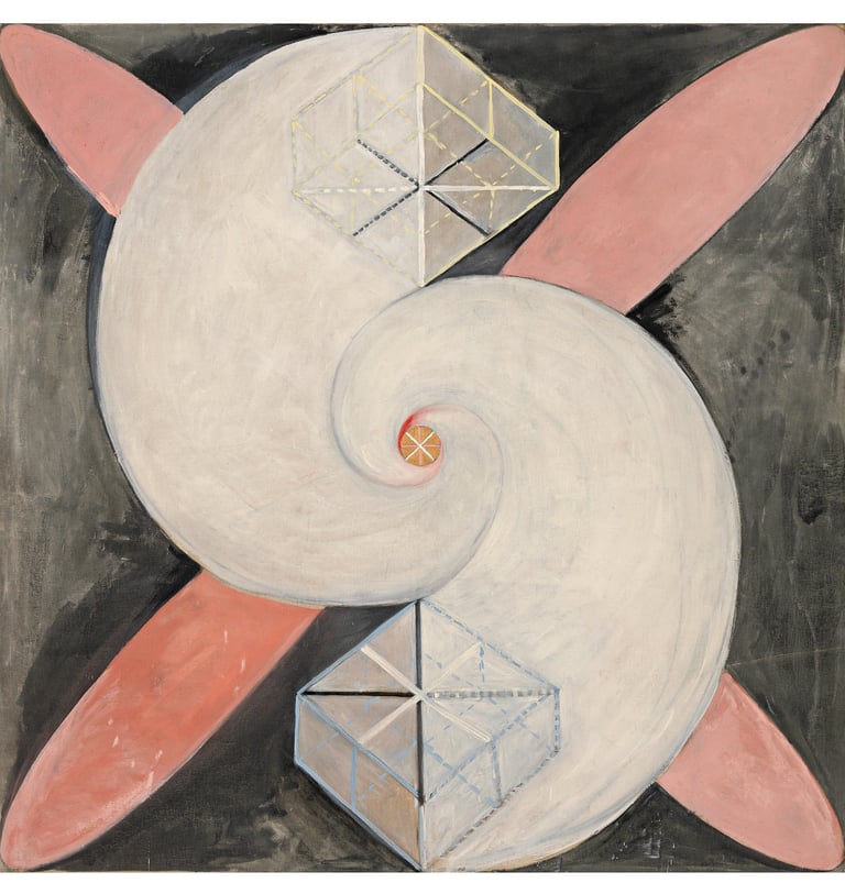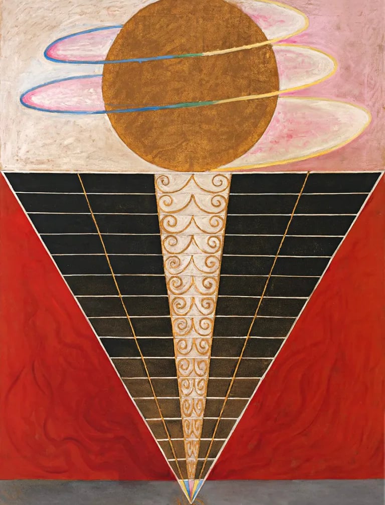Hilma af Klint (1862–1944) emerge hoy no como una excepción sino como la visibilidad más clara de una práctica colectiva que anticipó el lenguaje abstracto. Sus Pinturas para el Templo, iniciadas en 1906, funcionan como mapas de una epistemología alternativa: imágenes que traducen procesos interiores, energéticos y compartidos mediante geometrías, espirales, colores simbólicos y series que se despliegan como partituras visuales.